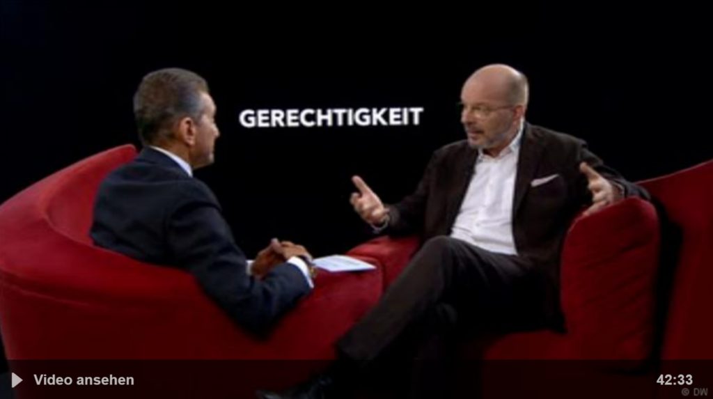 DW Auf ein Wort... Gerechtigkeit Gibt es eine objektive Gerechtigkeit? Kann es in der Gesellschaft gerechter zugehen, wenn Menschen mehr verzichten? Kann es Gerechtigkeit geben, ohne dass es Ungerechtigkeit gibt? Michel Friedman und der Philosophieprofessor Stefan...