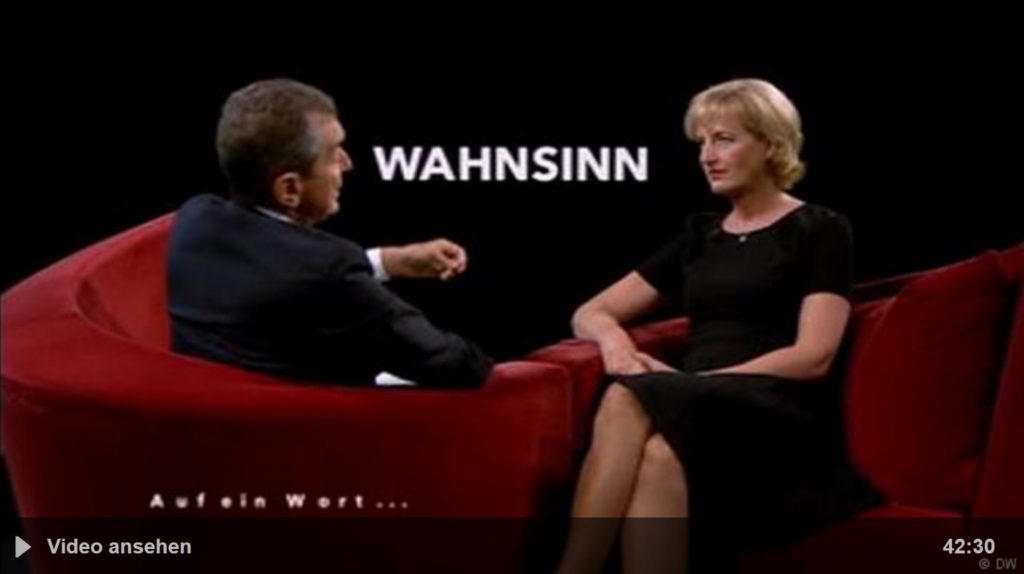 DW - Auf ein Wort ... Wahnsinn Warum macht Wahnsinn Angst? Ist es nicht überhaupt Wahnsinn, wenn man sich den Sinn eines Lebens aufbauen möchte? Was ist der Sinn, wenn nicht Wahnsinn? Michel Friedman und sein Gast, Prof. Christiane Woopen setzen sich mit dem...